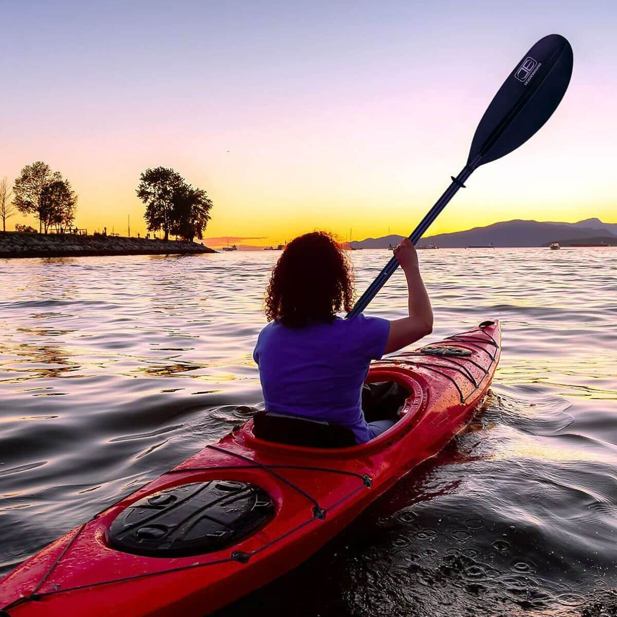 Another thing to consider is the size of the paddle. Paddles come in a variety of different lengths, so be sure to choose one that's the right size for you, or you can purchase one that has an adjustable length. You'll also want to think about the shape of the paddle blade and the feathering angle, again some paddles have the ability to adjust this so you can set up your paddle to have low angle blades, high angle blades, or something in between!