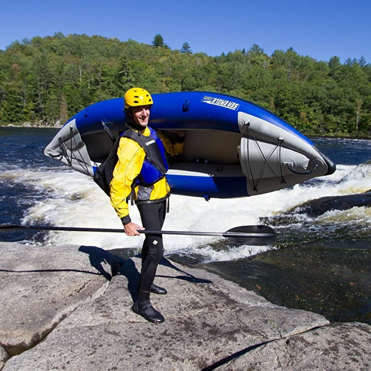 The Sea Eagle SE300X Explorer Inflatable Kayak is the perfect choice for whitewater kayakers. It is extremely tough and rated up to Class IV. It is also extremely portable with a total inflation time of just 5 minutes so you can easily carry it to the top of the rapids and be ready to launch in no time! Plus, it is 9'10" long by 3'3" wide and weighs just 30 lbs with a carrying capacity of 395 lbs. So if you’re looking for a premium inflatable kayak that can handle the roughest of waters, then the Sea Eagle SE300X Explorer is a perfect choice!