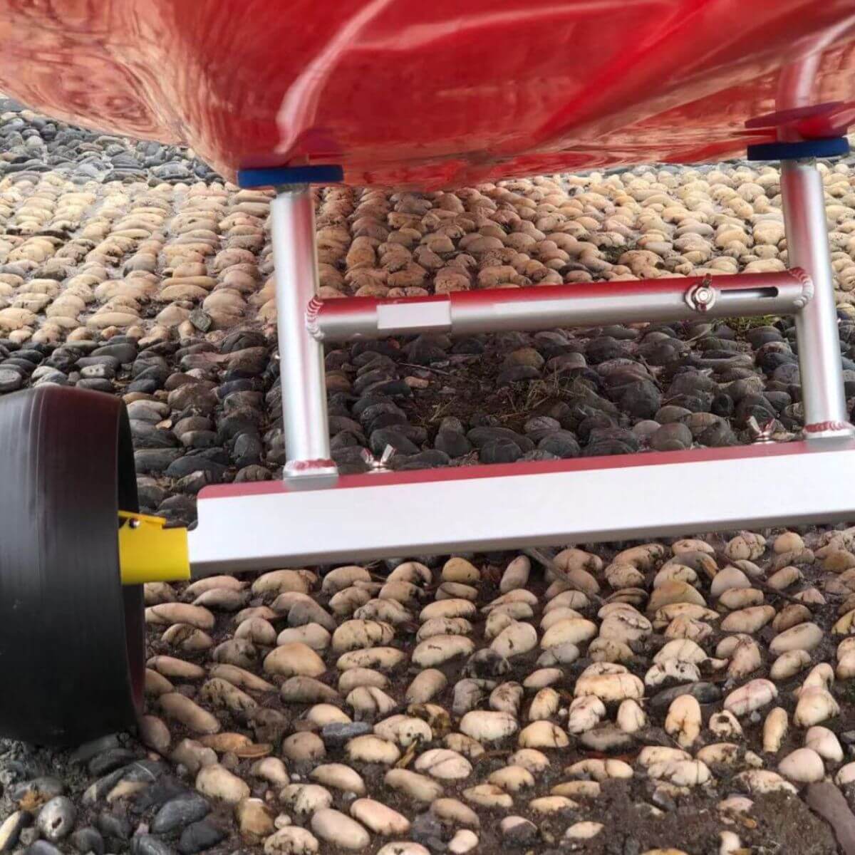 - Make sure your kayak is sitting on the adjustable rubberized pads or foam padding and not directly on the solid frame of the cart.
