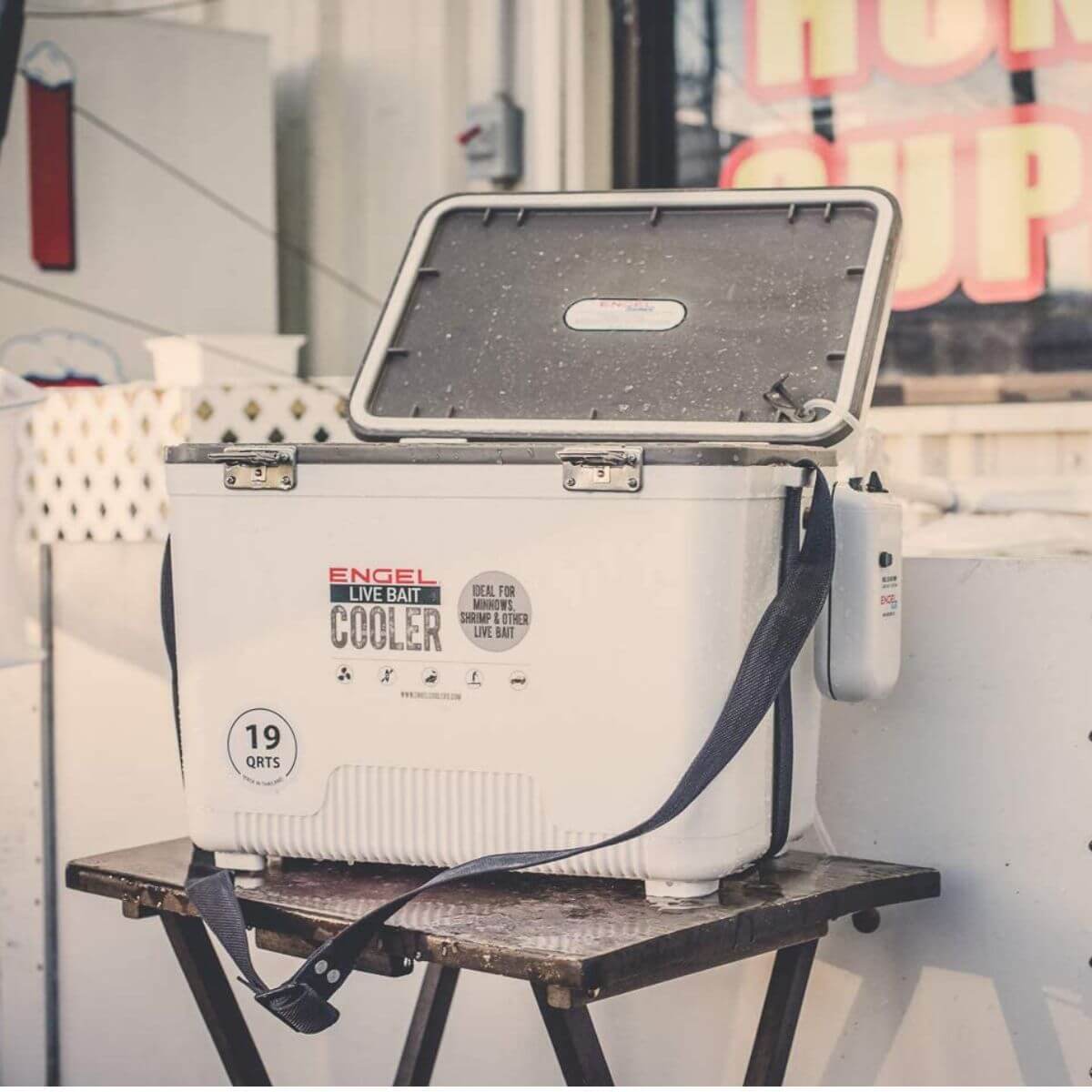 Engel's LBC30-RH 30qt Live Bait Cooler is perfect for keeping your food and drinks cold on your next outdoor adventure. Not only does it keep your food and drinks cold, but it can also double as a live bait tank that is perfect for kayak anglers! The included live bait aerator pump maximizes aeration and battery life while the water-resistant housing protects the motor and suppresses noise. Keep your bait fresh for longer with this must-have versatile cooler!