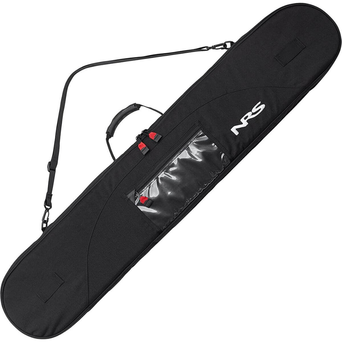 The NRS Two-Piece Kayak Paddle Bag is the perfect way to store and transport your breakdown kayak paddles. It features a clear window outer pocket for easy identification of your paddle, as well as 2 mesh inner pockets for additional storage. The center carry handle and removable shoulder sling makes it easy to take with you on the go, while the padded lining helps protect your paddle from scratches or damage. The bag can hold paddles up to 240 cm long, making it ideal for almost any size kayak paddle, and you can safely carry up to three paddles in this bag.