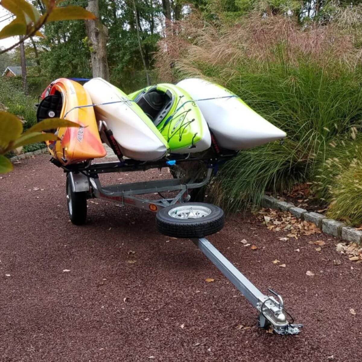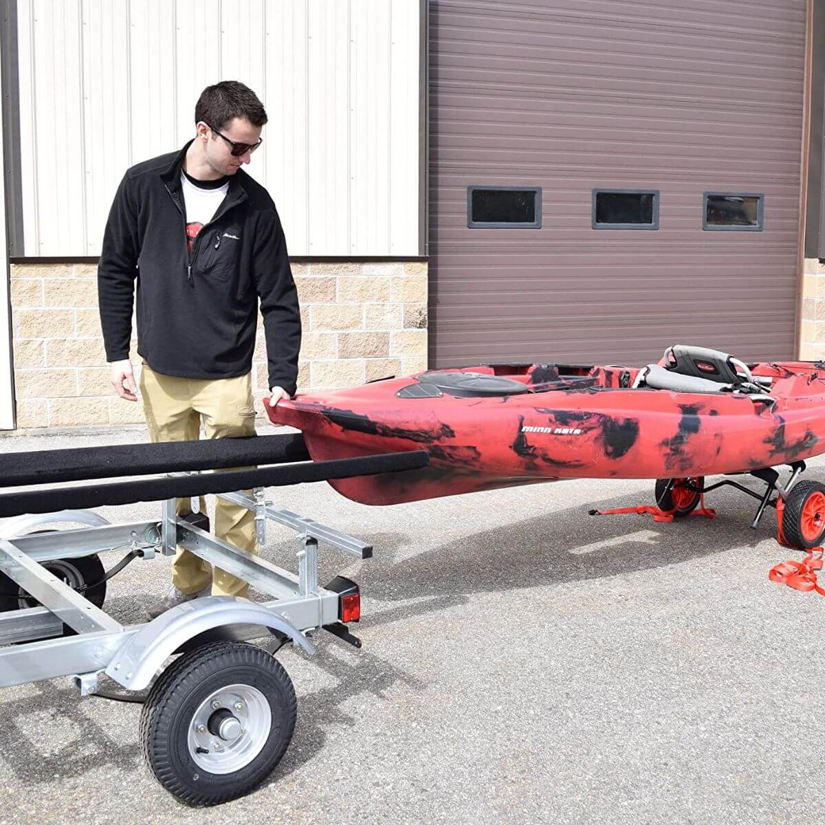 Kayak trailers are much easier to use and load than a kayak rack on a truck bed or a car roof rack. Save yourself the hassle and your back by getting a dedicated trailer for hauling kayaks.